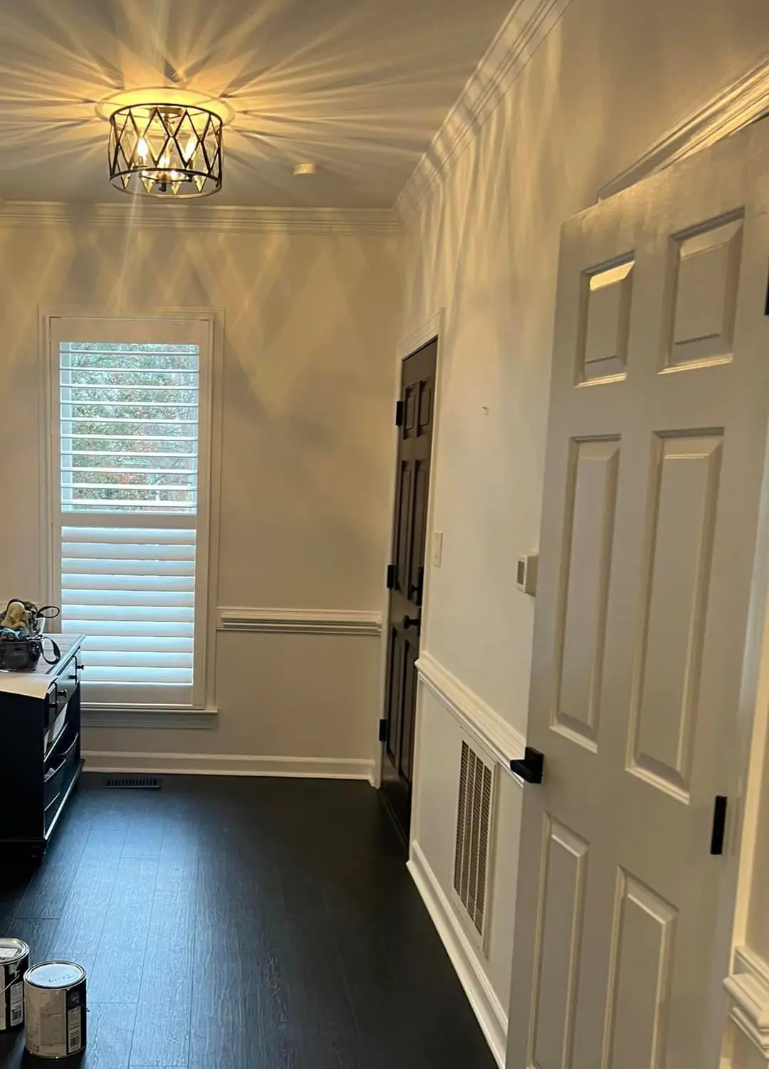 Our interior painting process beging with relocating all furniture to provide access to work areas. Furniture is then covered with plastic and floors are covered with drop cloths to insure protection of your property. All drywall repairs are completed, including nail pops, stress cracks, drywall tape before painting begins. Once painting is completed all areas are cleaned and dusted furniture is returned to its original positions. Any leftover paint is left for future touch ups and color matches.