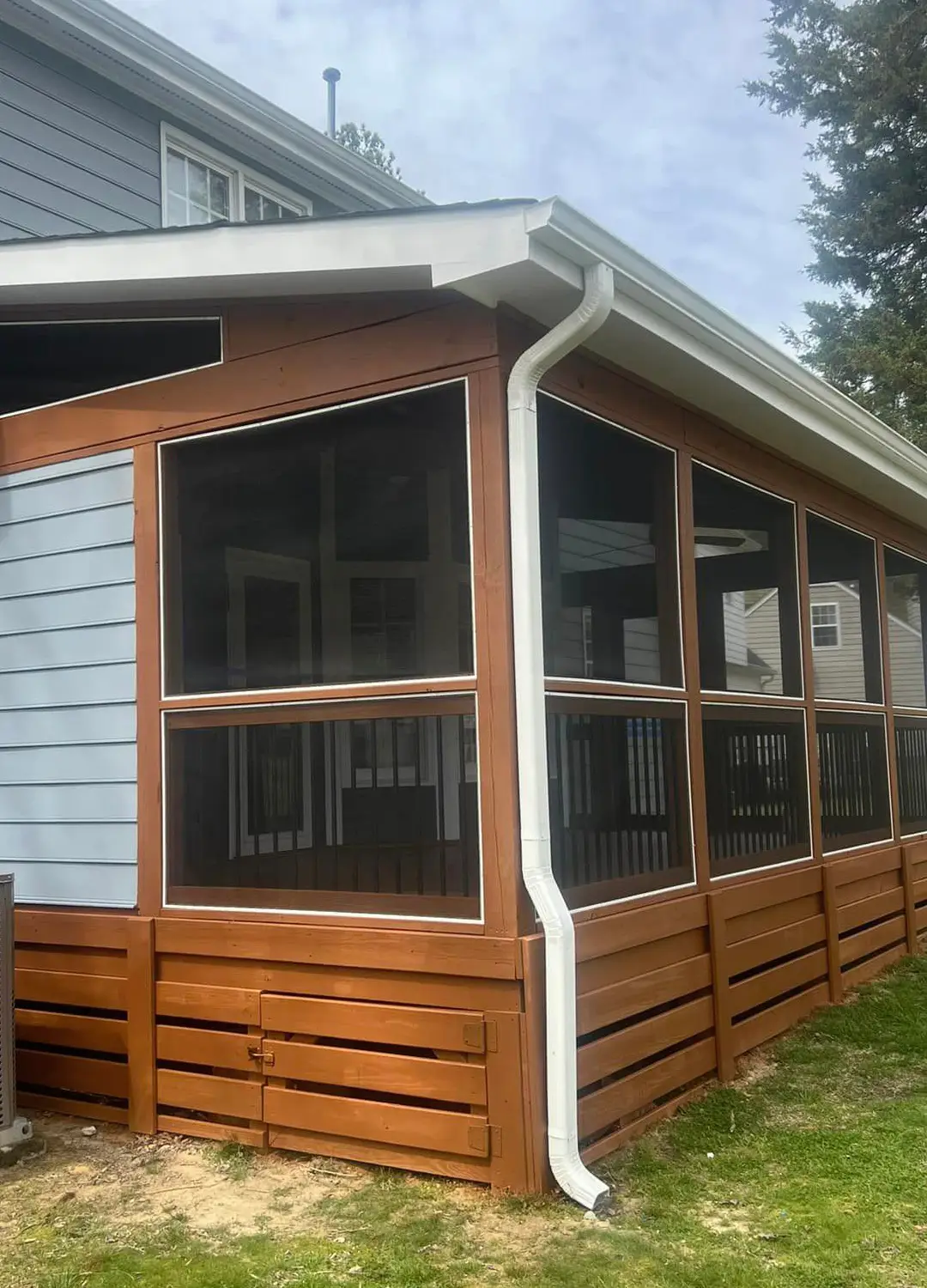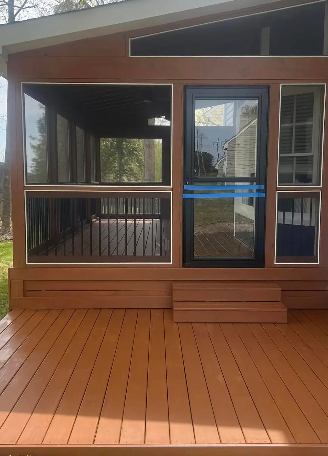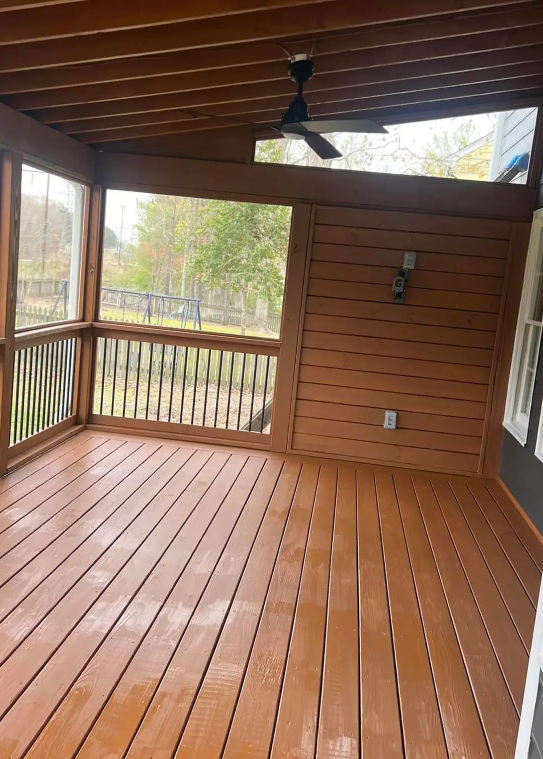 If the surface to be stained has been previously stained or has been painted, the surface must first be power washed to remove any dirt or mildew and any flaking or peeling stain/paint. If there is a significant amount of peeling stain/paint, we recommend scraping/sanding any loose or peeling paint. After all this pre-staining work is completed we then apply stain of your choice.