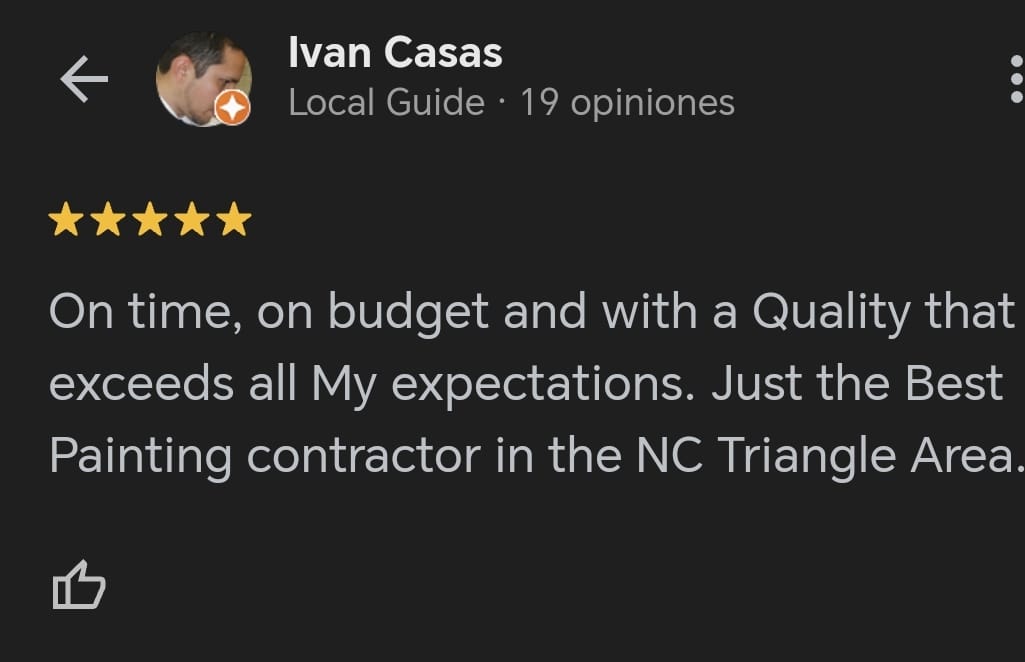 Javi Jr. Painting is a local painting contractor that was started more than 10 years ago here in the triangle area. Javier Palma the owner with the desire to better him self and at the same time provide a better future for his family, He decided that it was time for him to start a company that could provide quality painting services to home owners in the triangle area. It was a rough start since the economy at that time was at its lowest point; He always managed to stay bussy through happy customers reccommending his proffesional work to friends and relatives. Since then Javi Jr. Painting has completed hundreds of Exterior and Interior projects. The number of happy customers just keeps growing because of the attention to quality that Javier brings to the table.